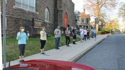 PRESS PHOTOS BY PAUL CMILBell ringers at Holy Trinity Memorial Lutheran Church play instruments May 3 outside the 604 Fourth St., Catasauqua, church during Bells Across Pennsylvania. All state residents and churches were asked to ring bells for three minutes - one to recognize and honor first responders, health care workers and employees of life-sustaining businesses; another to show solidarity