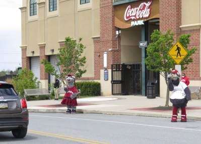 PRESS PHOTOS BY C. RICHARD CHARTRANDThe Lehigh Valley IronPigs offered a “Character Cruise-Thru” May 9 presented by Service Electric Cable Television, The Giant Company and Provident Bank. This family friendly event allowed guests to interact with dozens of princesses, superheroes and IronPigs mascots from the socially distant safety of their vehicles. Lehigh Valley IronPigs mascots FeFe and