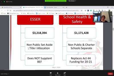 The board also heard an update from its coordinator of school safety and emergency management, discussed the renewal of its transportation management contract and the extension of its energy demand management contract, gave the first reading of some minor policy updates, and had the first of many discussions on reopening in the fall. All members other than Emily Schenkel were present; President Mike Faccinetto arrived late, but was present for the budget and re-opening discussions.