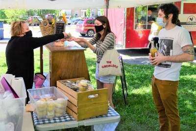 The 2020 Rose Garden farmers’ market kicked off its season on June 13 with Covid-19 restrictions in place, according to organizer Mary Toulouse. Patrons were required, under the current yellow restrictions, to wear masks, practice social distancing, and be limited to 25 persons within the cordoned-off market area. “People are being very smart” about this, said Toulouse as market patrons were coming and going with purchases in hand. About 10 vendors participated on the initial weekend. Toulouse said the market will run each Saturday from 9 a.m. to 1 p.m. until Oct. 10. She also hopes to add some live music performances as restrictions are rolled back further.