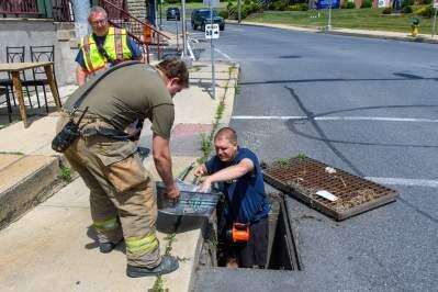 To the rescue Tweet Published July 01. 2020 12:00AM by The Press PRESS PHOTOS BY SCOTT M. NAGYWhitehall Township emergency personnel respond to a call June 25 that 11 ducklings had fallen into storm drains at Route 329 and Church Street, Egypt, and were in need of rescue.