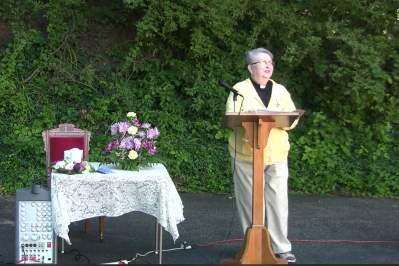 CONTRIBUTED PHOTOSJerusalem Evangelical Lutheran Church of Eastern Salisbury, 1707 Church Road, Allentown, is holding outdoor services, weather permitting. ABOVE: Rev. Kathleen Coleman leads the congregation in worship during the July 12 service.