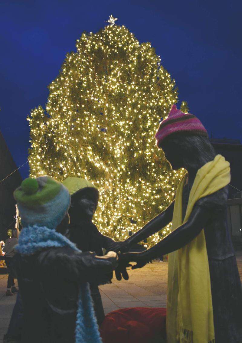 • The Christmas City Trellis, filled with chimes purchased by locals each holiday season, is further decorated with about 200 Moravian Star ornaments honoring Lehigh Valley healthcare heroes for their monthslong fight against the worldwide pandemic.
