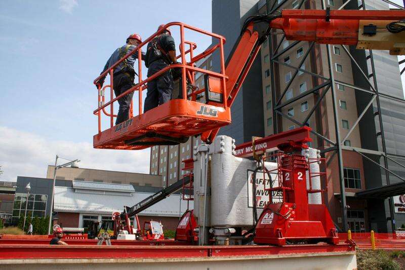 • Bethlehem Steel Corp’s massive and historic 350-ton steel press, once used to form battleship hulls, is carefully cut free from its nearly 130-year home behind what is now Wind Creek Bethlehem casino, and relocated to the National Museum of Industrial History.