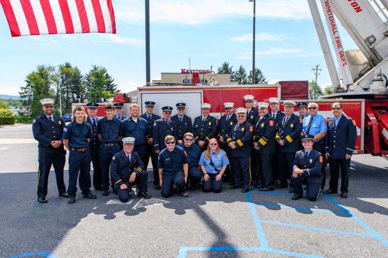 Firefighters are in attendance at the ceremony. Each of the township stations - Egypt, Fullerton, Hokendauqua and West Catasauqua - received recognition.