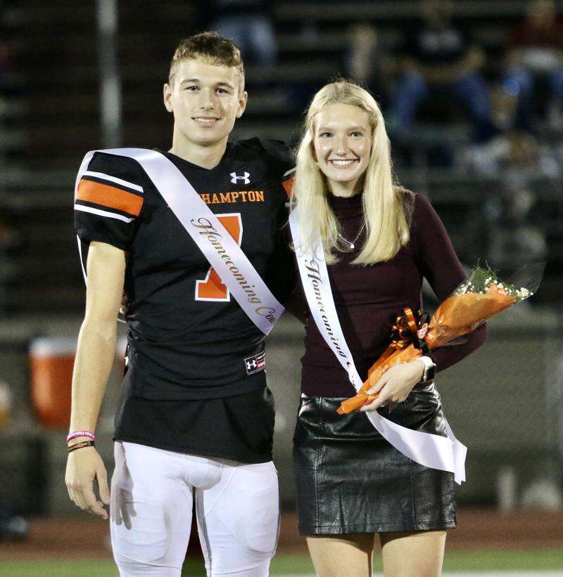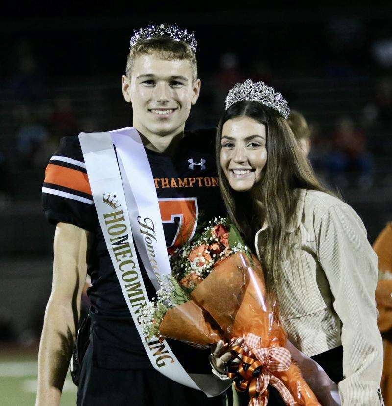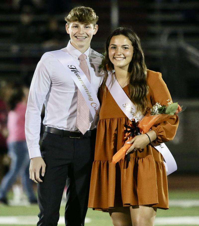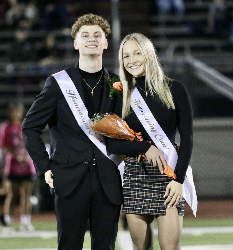 PRESS PHOTOS BY LINDA ROTHROCK Northampton Area High School students Cooper King and Lily Stuhldreher are named Homecoming king and queen during halftime of the Oct. 15 football game against Pocono Mountain East High School. The K-Kids won 56-16.