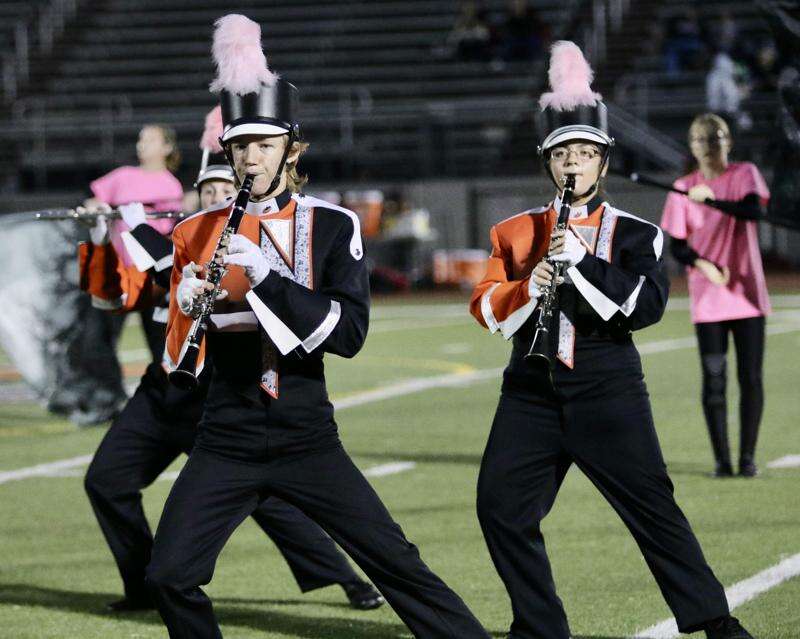 PRESS PHOTOS BY LINDA ROTHROCK Northampton Area High School students Adam Reichelderfer and Makenna Gilmore, part of the 2021 Homecoming court, gather for a photo during halftime of the Oct. 15 game against Pocono Mountain East High School. A Homecoming dance for NAHS students was held Oct. 16.