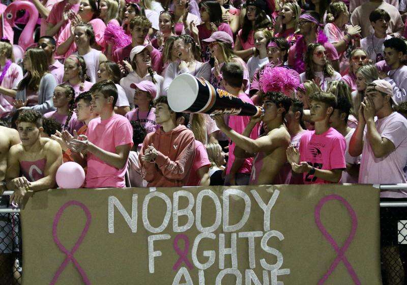 The student section sports some pink in support of Breast Cancer Awareness Month.