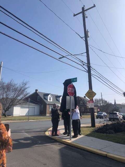 By 1:30 p.m., more than 70 friends, family and community members gathered to dedicate the North Catasauqua Borough trail section in memory of the late police chief, Kim Moyer. As the crowd gathered, you could overhear stories revealing the depth of love and respect the community had for Moyer.