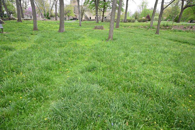 PRESS PHOTO BY JIM MARSH In any normal year, this meadow near the Lehigh County Lock Ridge Park in Alburtis would be a carpet of blue with an April bloom of flowering bluebells. This year the bluebells can only be found in widely scattered solo blooms. Where have all the bluebells gone? According to a park groundskeeper, a herd of wild deer near the park have had a great impact this year. The deer have been munching in the bluebell meadow through the winter and spring, the groundskeeper said. With little to no snow cover on the field during the winter, the deer have been able to freely graze, leaving the flowery plants without the ability to mature and bloom.