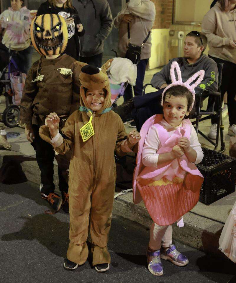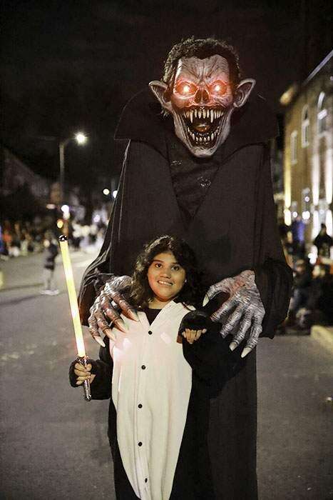 Gabby Rodriguez, of Northampton, has fun at the parade with Robert Rodriguez, in his ghoulish costume.