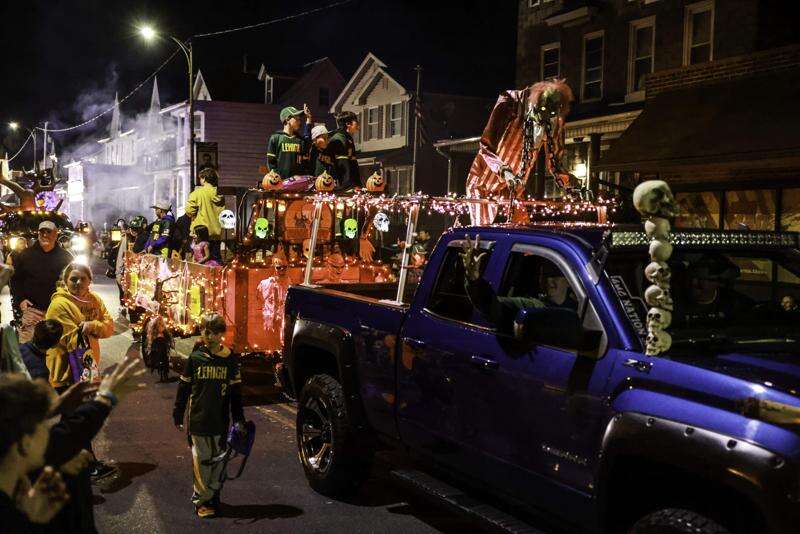 PRESS PHOTOS BY DONNA GEWERTZ The Lehigh Township Athletic Association float moves along Main Street Oct. 19 as part of the 74th annual Jack Frost parade. The parade is sponsored by the Northampton Exchange Club.