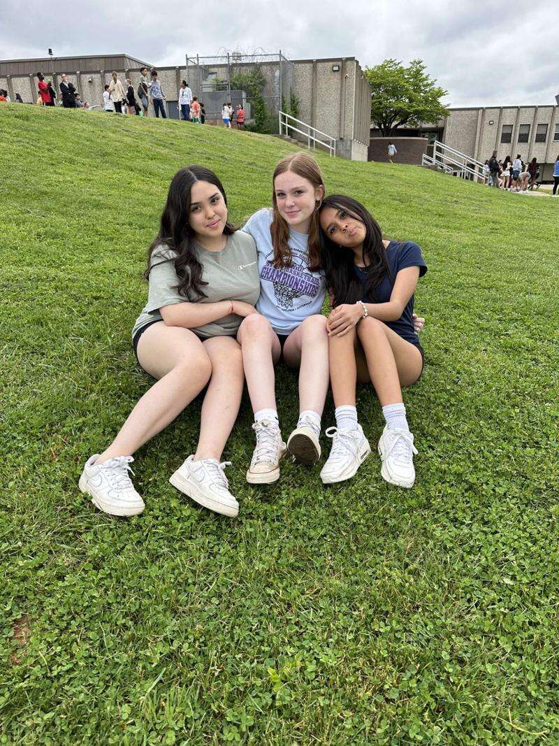 ABOVE: Alexis Snyder, Lauren Scialla and Kailee Gonzalez take a break from field day activities. Field day encourages physical activity as a lifelong skill.