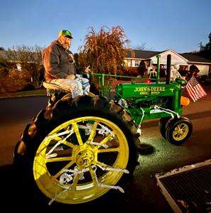 John Ferrer is joined by several skeletal passengers at the Alburtis Halloween parade.