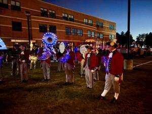 Members of the Brandywine Heights Band prepare for the Alburtis Halloween parade. Parade participants gathered at the Alburtis Elementary School to line up.
