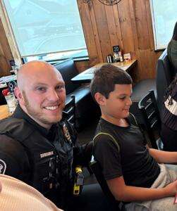 Officer Cole Surridge and Austin Ambrose have a discussion about what to eat for breakfast.PRESS PHOTOS BY SHARON SCHRANTZ