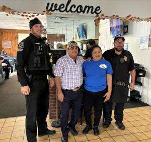 PRESS PHOTO BY SHARON SCHRANTZOn Nov. 10, the Macungie police went to work at the Macungie Diner swapping duty belts for aprons. The police department schedules these events periodically to chat with the residents of Macungie. ABOVE: Officer Cole Surridge, Marcelino Alarcon, the owner of the diner, Michele Carl and Officer Todd Bernhard begin their duties serving customers. Additional photos appear on Page A5.