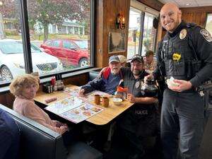 Carl and Marilee Oplinger enjoy breakfast and conversation with Officers Todd Bernhard and Cole Surridge Nov. 10 at the Macungie Diner.