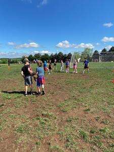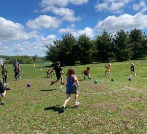 Students in Jennifer Budick’s second grade class playing capture the flag.