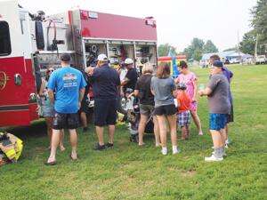 Macungie Police hosted its National Night Out community event in Macungie Memorial Park Aug. 5. The event included displays by first responders, food trucks, inflatable attractions for kids, music performances, a basket raffle and more. ABOVE: Visitors tour a Lower Macungie Fire Department fire truck during National Night Out in Macungie Memorial Park.