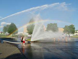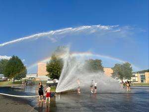 Press Photos by Tim SinglesA rainbow is visible in the water’s spray. Temperatures reached into the 90s July 29, according to weather records available online.