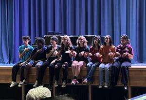 Whitehall-Coplay Middle School students sing “Unwritten” by Natasha Bedingfield with music teacher Elaine Ramirez on the piano.