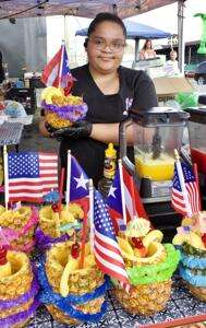 Lesley Valdez of the El Gallo Pico food truck displays one of the delicious juices offerings in flavors such as piña colada, mango and passion fruit reminiscent of the tastes of Puerto Rico.