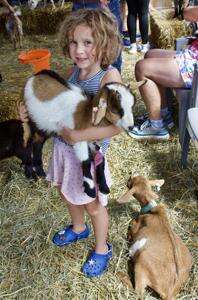 Josie Boscia has found a new friend in Aspen the baby goat in the Steinmetz Family Farm Goat Snuggling Exhibit.