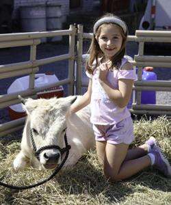 PRESS PHOTO BY DONNA GEWERTZAddison Ott, of Catasauqua, pets a White Park/Scottish Highland mix cow named Conway during the Uptown Northampton Street Fair, held Sept. 13 on Main Street in Northampton Borough. The cow was provided by Horns and Hooves, of Danielsville.