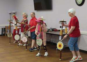 Press Photos by C. Richard ChartrandLehigh Valley Active Life senior center hosted “An Introduction to Boombas” class recently. Attendees were encouraged to “play, watch, listen, learn” about the instrument. ABOVE: Boomba players entertain listeners. A boomba is a percussion instrument featuring a tambourine, cowbell, wooden block and Swiss bells attached to a pole mounted on a spring. The instrument is frequently credited as significant to Pennsylvania Dutch culture.