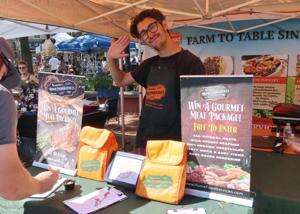 Home Food Services has a booth handing out samples of their pulled pork. Mike Noel is at the stand helping patrons.