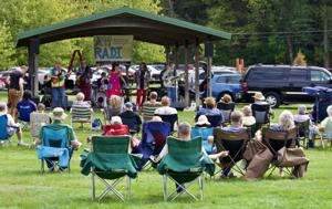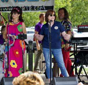 PRESS PHOTOS BY KATHY HASSICKSalisbury Township Recreation Director Genny Baillie welcomes residents and introduces the AM Radio Tribute Band Sept. 27 at Franko Park.