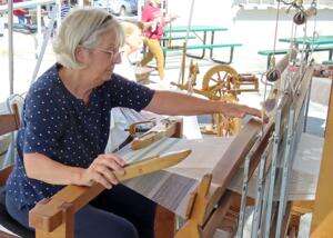 Ruth Konrad creates cloth using thread from the spinning wheel.