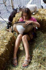 Clare Boscia has found her happy place – in the hay snuggling a baby goat.