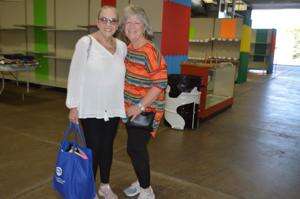 Bonny Peters, of Easton, is accompanied by friend Nancy Sullivan, of Bethlehem, as she drops off her contest entries.