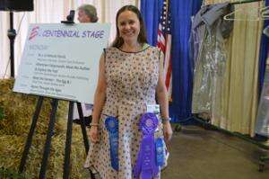 Karen Hofmann models the apron she created. Her creation earned “Best in Show” in her category.