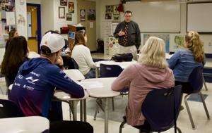 Parents listen attentively during the Sept. 25 Salisbury High School open house as social studies teacher Michael Barna utilizes his open and engaging style of teaching to outline course expectations.