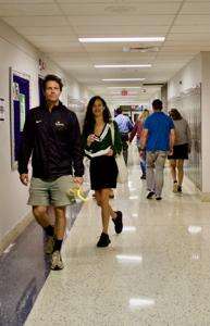 RIGHT: Harkening back to their own high school days, parents navigate the hallways meeting every teacher on their student’s schedule during the SHS open house event. Additional photos appear on Page A11.