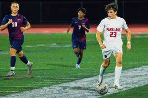 PRESS PHOTO BY MATT BREINERCarter Shirk controls the ball during Parkland’s win over Liberty last week.
