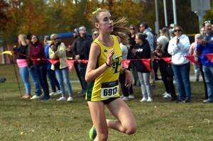 Two-time defending District 11 champ Mady McCartney took first place in the girls meet with a course record time of 19:59.