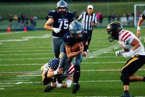 Northern Lehigh was able to put together its best drive of the night after Sukanick’s second score, going 11 plays and 77 yards — capped off by a 25-yard strike from Garrett Smoyer to Colin Karetsky at the right pylon to cut the deficit to 21.