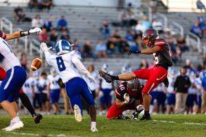 On the ensuing drive, Bears’ quarterback Jaxson Haines rolled out on third-and-long, but his pass downfield was deflected and intercepted by Lawrence, who displayed excellent field awareness as he ran across the field and returned the pick to the Bears’ 7-yard line. Two plays later, fullback Jaren Sanchez powered his way into the end zone to make it 14-0.