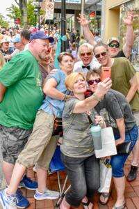 Left: From Bethlehem, Breiningsville and Washington, New Jersey, this group of friends does a Celtic selfie on Main Street.