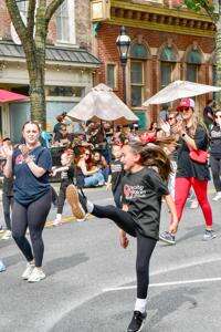 A student from the O’Grady Quinlan Academy of Irish Dance breaks into dance during the Parade of Tartans.