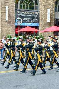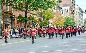 The Freedom HS Patriot Band marches down Main Street near the start of the parade.