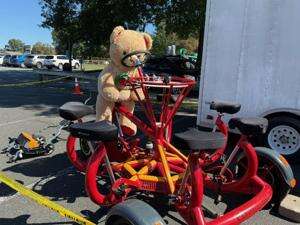 LEFT: A variety of bikes are on display – this one with a very special passenger.