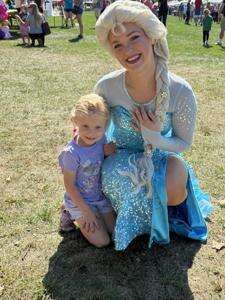 The 33rd annual Coopersburg Community Day, presented by the Coopersburg Historical Society and supported financially by businesses in the community, was held Sept. 20 at Living Memorial Park. LEFT: Juliette Manning, of Coopersburg, visits with Elsa at Community Day.PRESS PHOTOS BY DEBBIE GALBRAITH