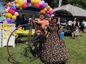 ABOVE: Donald Serfass, of Hometown, portrays one of the world’s first bicyclists on his 1890 Victorian Highwheel and Linda Minarik, of Coopersburg, portrays Mary Todd Lincoln.