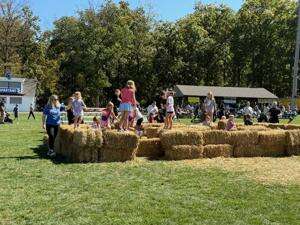 Kids have fun playing on the hay bales – just one of the many activities for the younger residents.