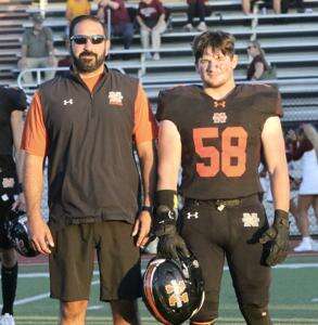 Senior football player Ryan Heckman with mentor coach Larry Moussa